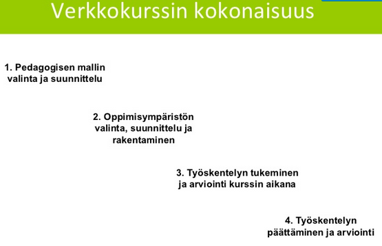 VERKKOKURSSIN KOKONAISUUS kohta 2: Oppimisympäristön valinta, suunnittelu ja rakentaminen.