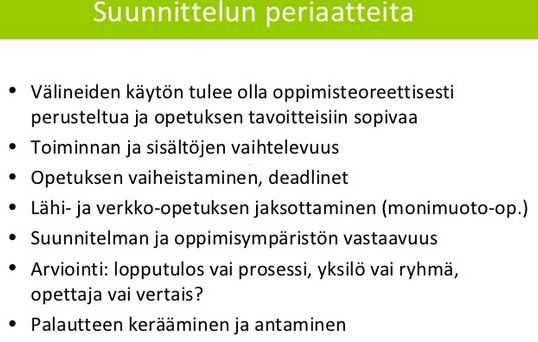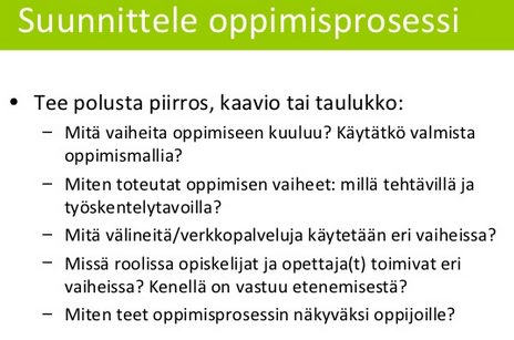 Muista ottaa huomioon verkko-oppimisympäristöä rakentaessasi.