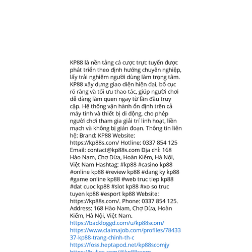 Website: https://kp88s.com/. KP88 là nền tảng cá cược trực tuyến được phát triển theo định hướng chuyên nghiệp, lấy trải nghiệm người dùng làm trọng tâm. KP88 xây dựng giao diện hiện đại, bố cục rõ ràng và tối ưu thao tác, giúp người chơi dễ dàng làm