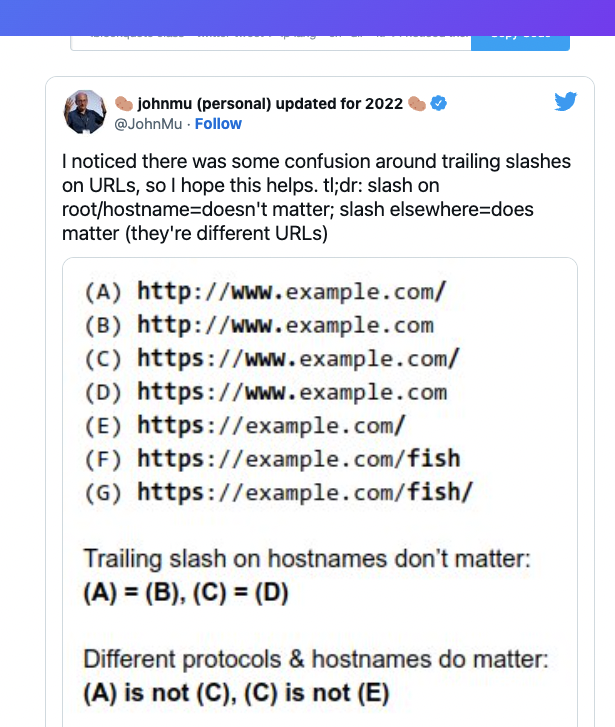 Last but not least, make sure your www urls redirect to non-www or vice versa, urls with no slash end with a slash.