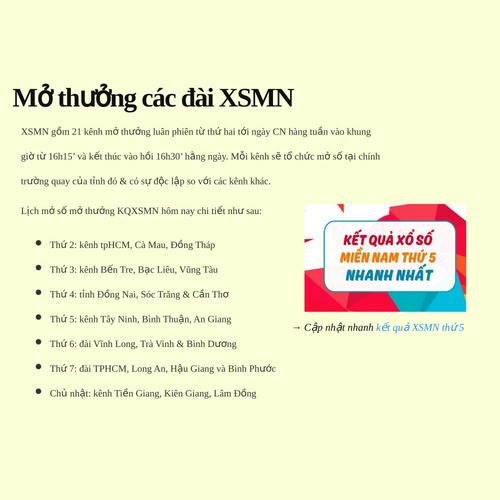 Soi cầu, cập nhật và thống kê trực tiếp kết quả Xổ số miền Nam thứ 5 hàng tuần.