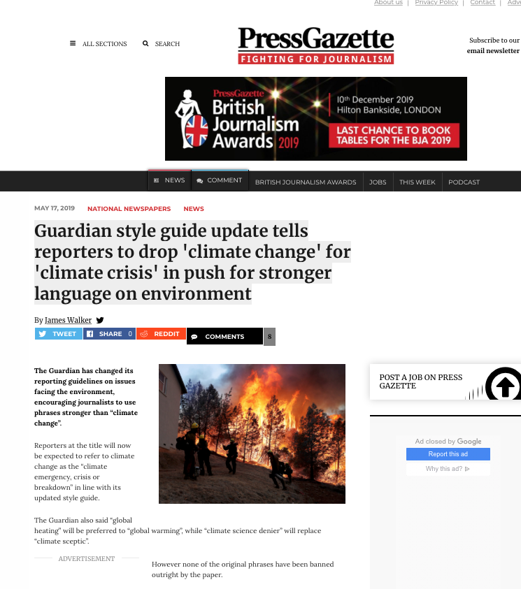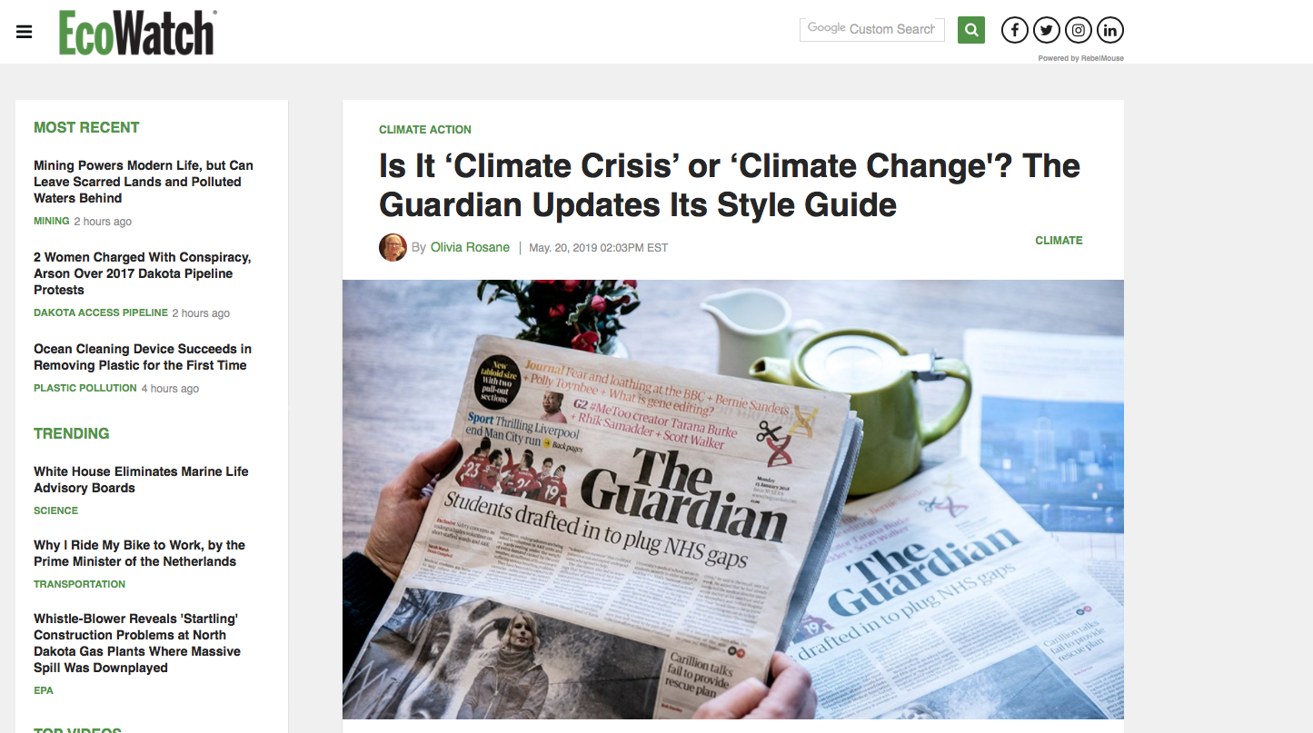 Coverage of the Guardian's style guide change announcement.