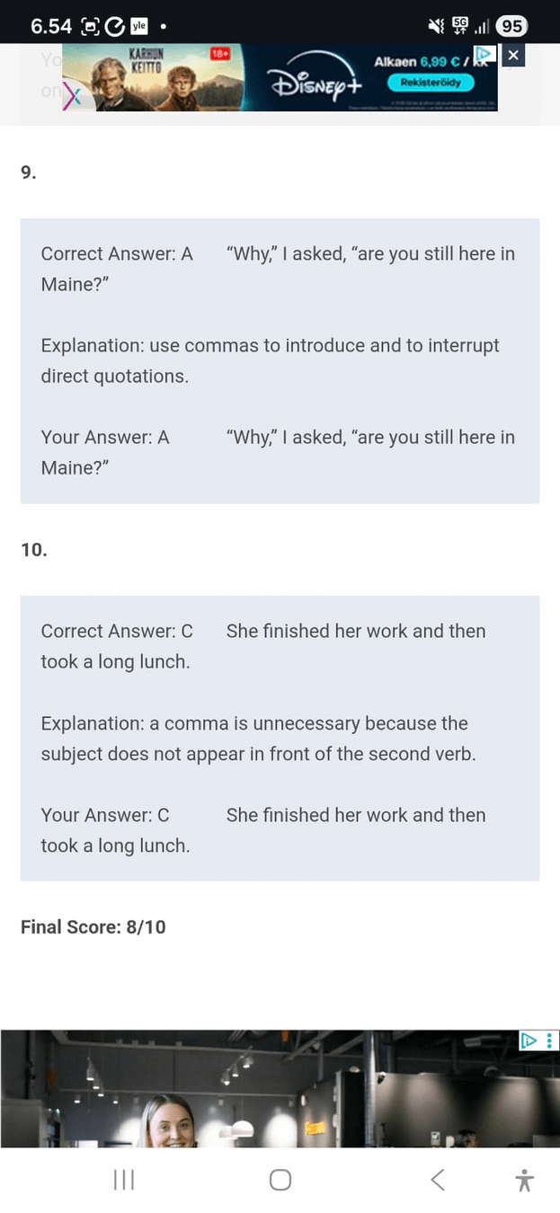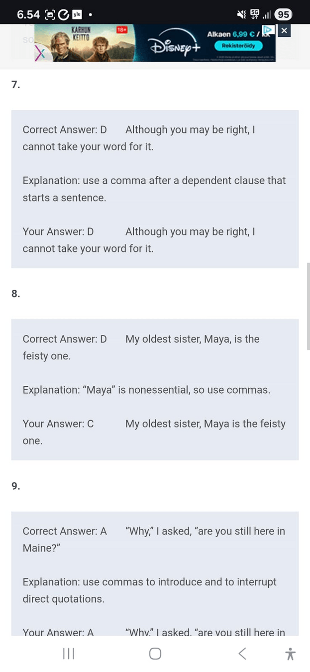 luettelo - laita myös se viimeinen pilkku ennen and/or jotta ei vahingossa synny väärinymmäryksiä, varsinkin jos luettelossa on pidempia juttuja. Tätä kutsutaan Oxford comma:ksi. Read more: https://www.grammarly.com/blog/what-is-the-oxford-comma-and-why-do-people-care-so-much-about-it/