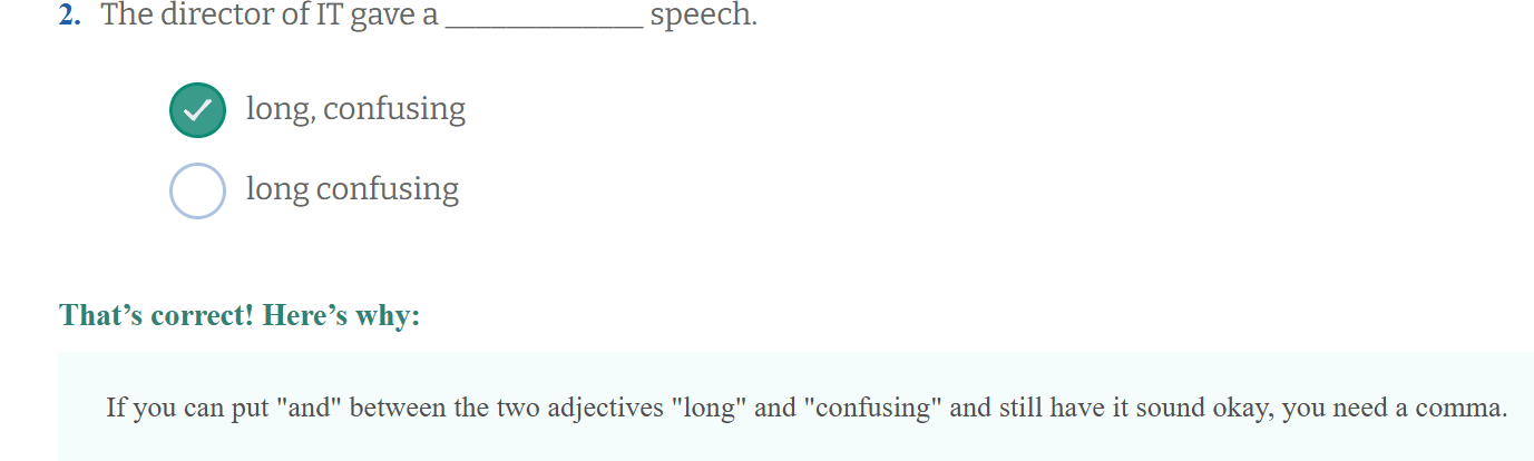 Adjektiivien väliin tulee pilkku, jos niiden väliin voi luontevasti laittaa sanan and.