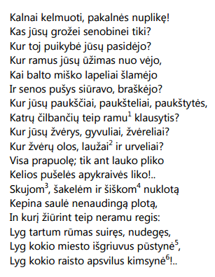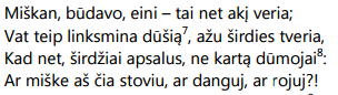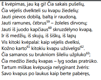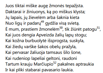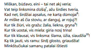 paprastas, miške augęs žmogus, pažįsta ir supranta Anykščių šilelio grožį, jį jaučia, patiria artumą su grožiu ir jo kilme, o jis jam teikia malonumą,