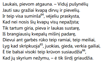 būdamas gamtoje žmogus jaučiasi lyg sakralioje erdvėje, lyg "dūšia dangun kilsta".