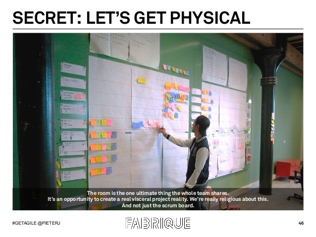 - Vereist een actieve houding: rechtopstaand bij het scrum bord (niet hangen!), iedereen doet mee