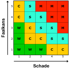 - Grootte van een risico = kans van optreden x gevolg/impact voor je project