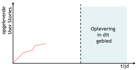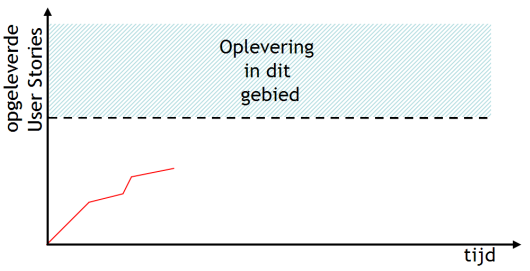 - Bij de achtste sprint blijkt dat er nog werk is voor 5 sprints, maar budget voor 2.