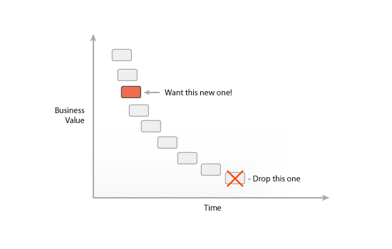 In de backlog staan user stories, gesorteerd naar belang voor het programma (business value).