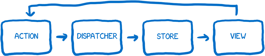 When you add a new item, the view dispatchesan action, the store responds to that action, the store mutates data, the store triggers a change event, and the view responds to the change event by re-rendering.