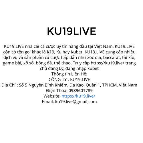 KU19.LIVE nhà cái cá cược uy tín hàng đầu tại Việt Nam, KU19.LIVE còn có tên gọi khác là K19, Ku hay Kubet. KU19.LIVE cung cấp nhiều dịch vụ và sản phẩm cá cược hấp dẫn như xóc đĩa, baccarat, tài xỉu, game bài, xổ số, bóng đá, thể thao. Truy cập htt