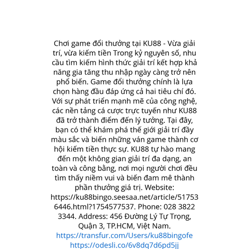 Website: https://ku88bingo.seesaa.net/article/517536446.html?1754577537. Chơi game đổi thưởng tại KU88 không chỉ là hình thức giải trí tuyệt vời mà còn mở ra cơ hội kiếm tiền hấp dẫn. Với sự đa dạng về trò chơi, cam kết về an toàn, minh bạch cùng các