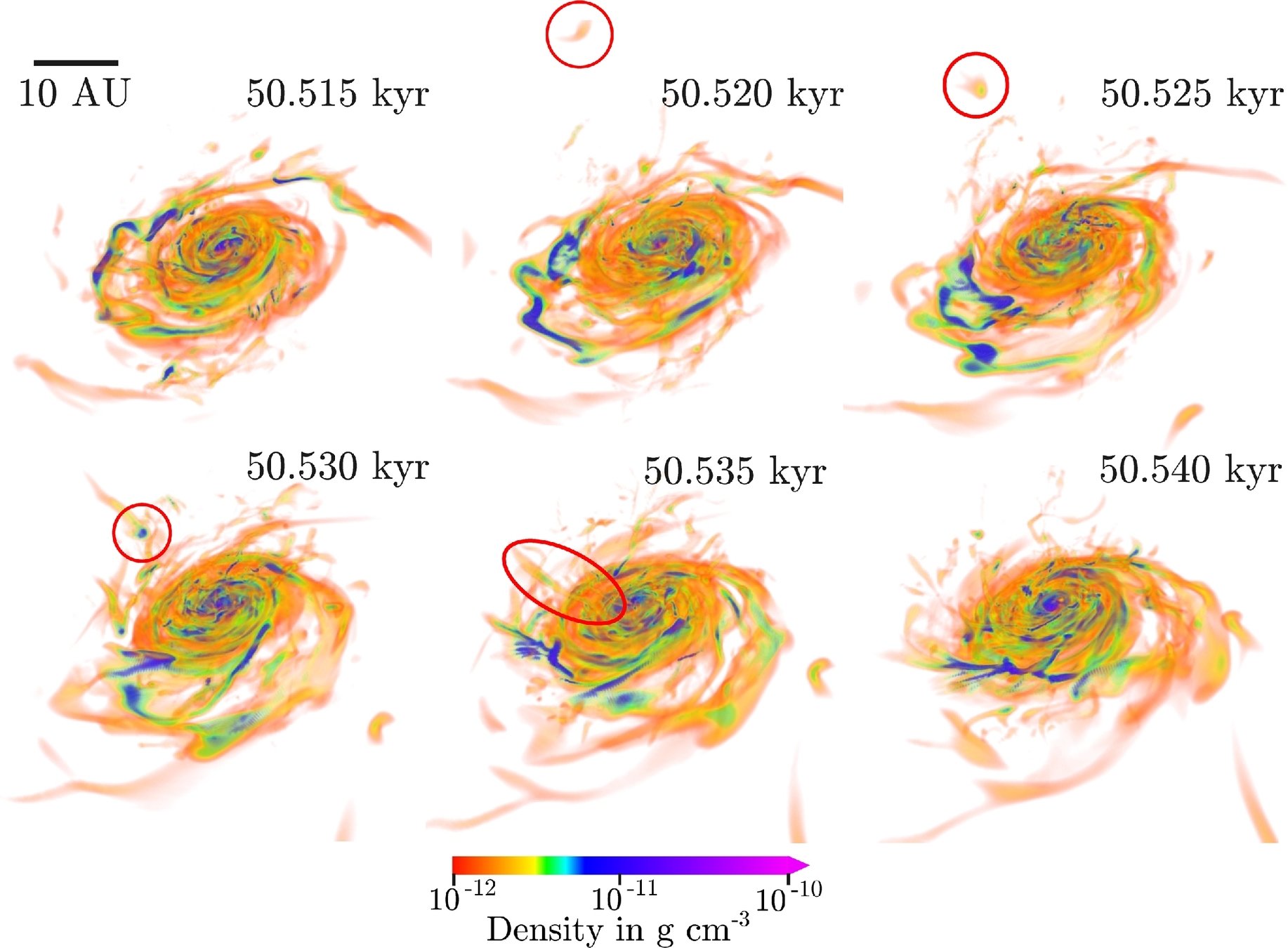 Zoom-in simulation*, ~1 au resolution in disk, barotropic equation of state