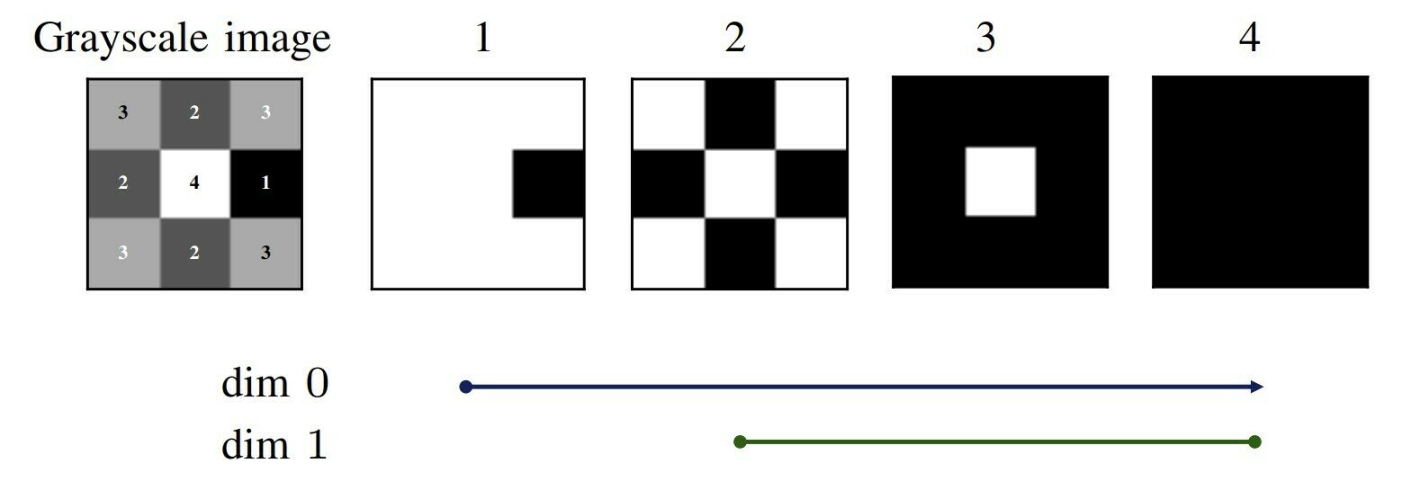 The image above has cubes indexed by their intensity and depicts a filtration of cubical complexes.
