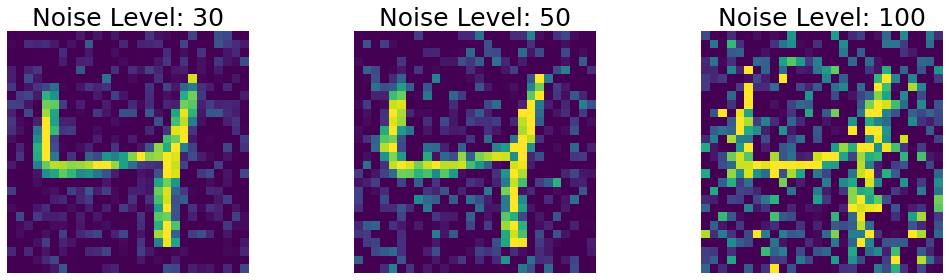 Noise was generated by sampling a gaussian distribution with mean 0 and standard deviation equal to noise level. We consider 3 levels of noise.