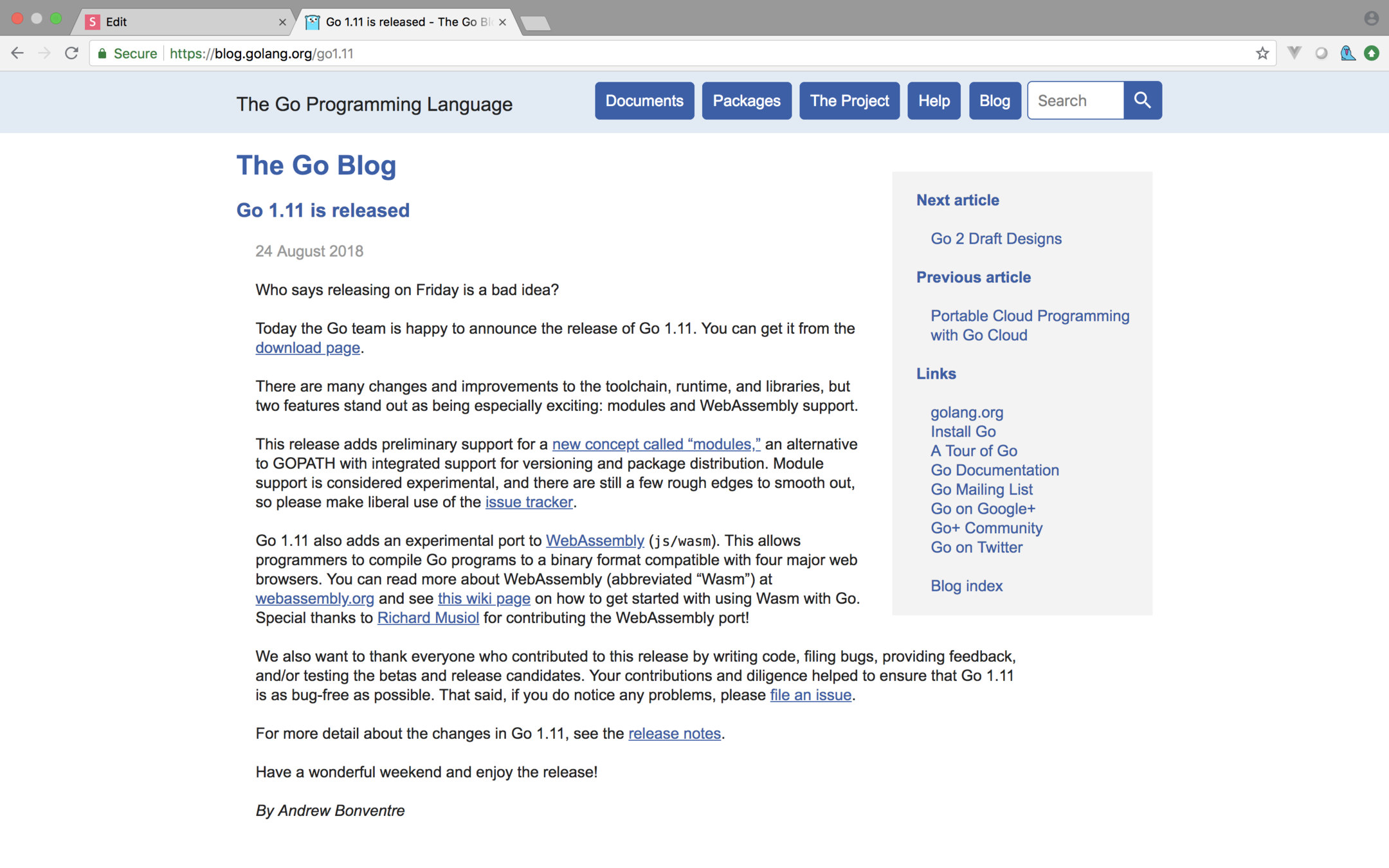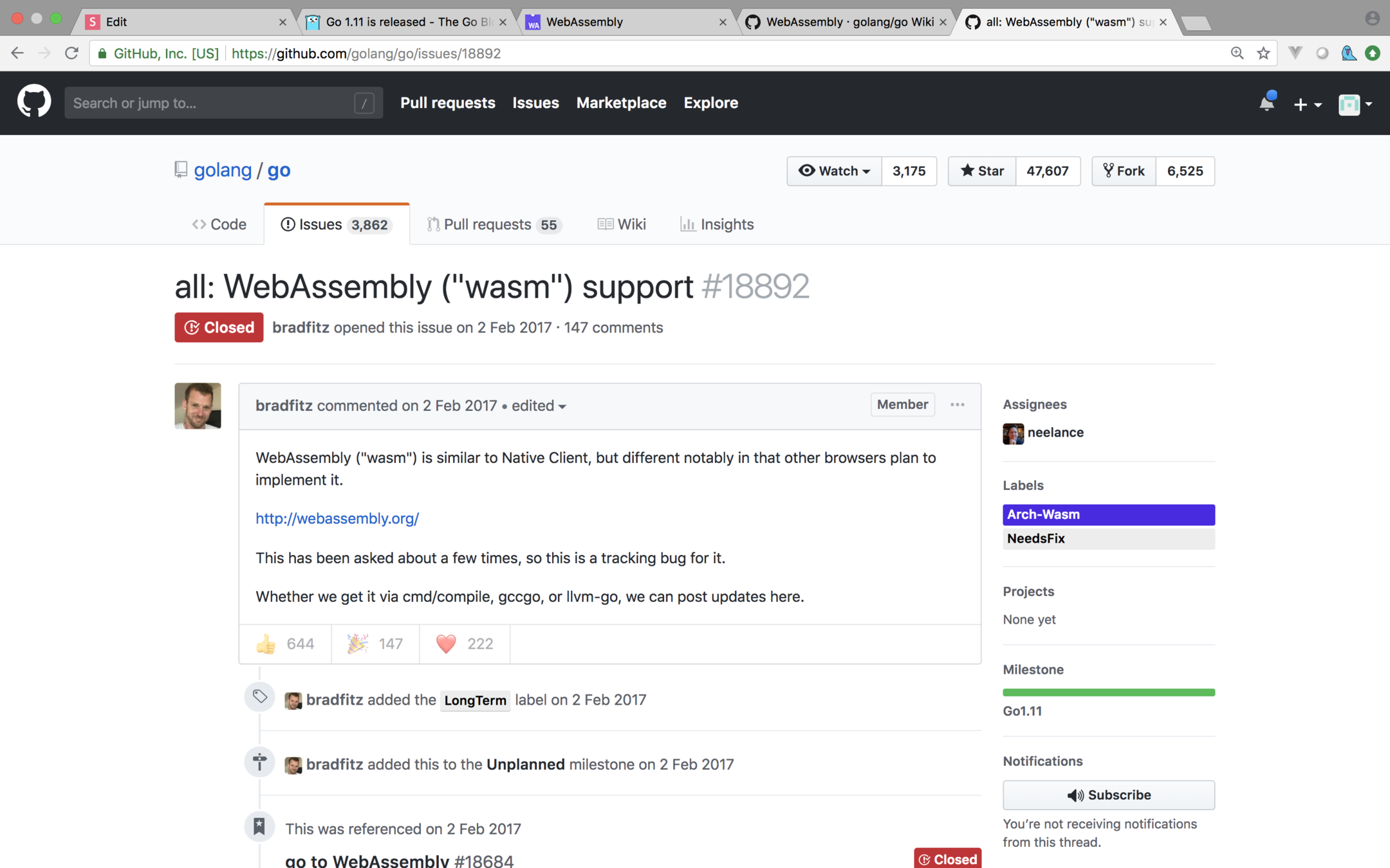 - Ticket opened in the Golang repo in 2017, no real WebASM support before then