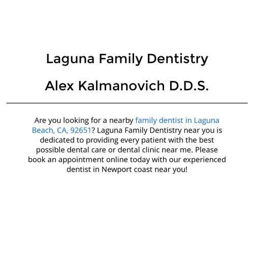 Are you looking for a nearby family dentist in Laguna Beach, CA, 92651? Laguna Family Dentistry near you is dedicated to providing every patient with the best possible dental care or dental clinic near me. https://lagunafamilydentistry.com/