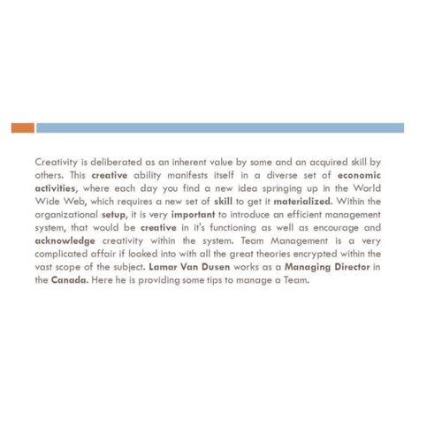 Lamar Van Dusen is the Managing Director. Here, He has Explained some tips for Managing the team in an organization. https://medium.com/@lamarvandusen874/lamar-van-dusen-leadership-tips-for-managing-directors-770fadf08a2d