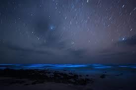 the ocean shine with the light of bioluminescent bacteria in the