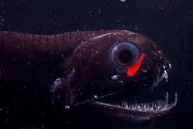 While most marine bioluminescence is green to blue, some deep sea barbeled dragonfishes in the genera Aristostomias, Pachystomias and Malacosteus emit a red glow. This adaptation allows the fish to see red-pigmented prey, which are normally invisible in the deep ocean environment where red light has been filtered out by the water column.