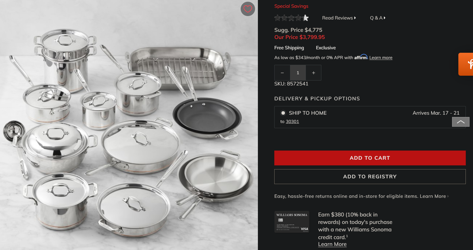 All-Clad Cookware Screenshot from Williams Sonoma 01-16-2022