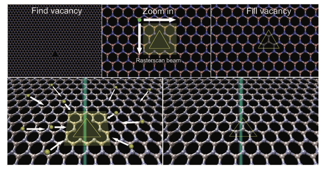 Park, Hyoju, et al. "Atomically precise control of carbon insertion into hBN monolayer point vacancies using a focused electron beam guide." Small 17.23 (2021): 2100693.