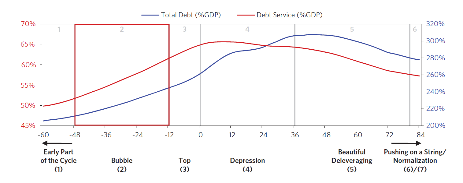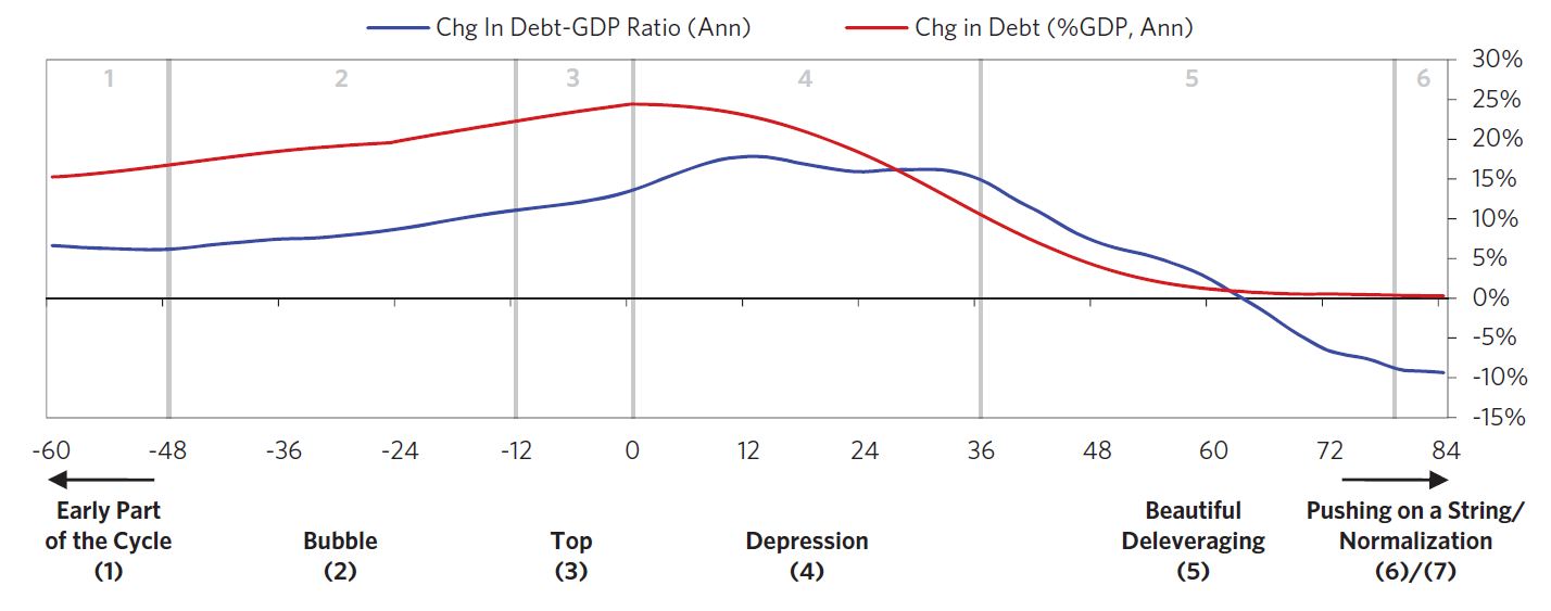 Las 7 fases del clásico ciclo deflacionario de deuda