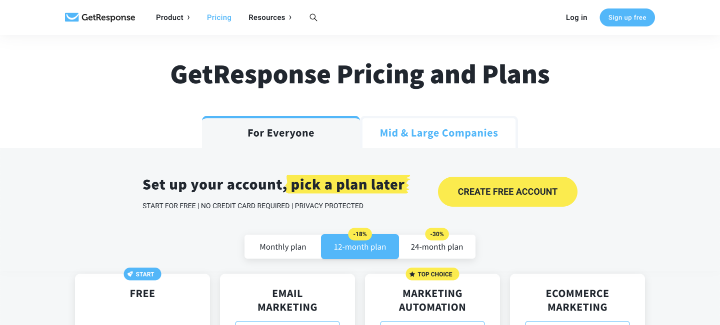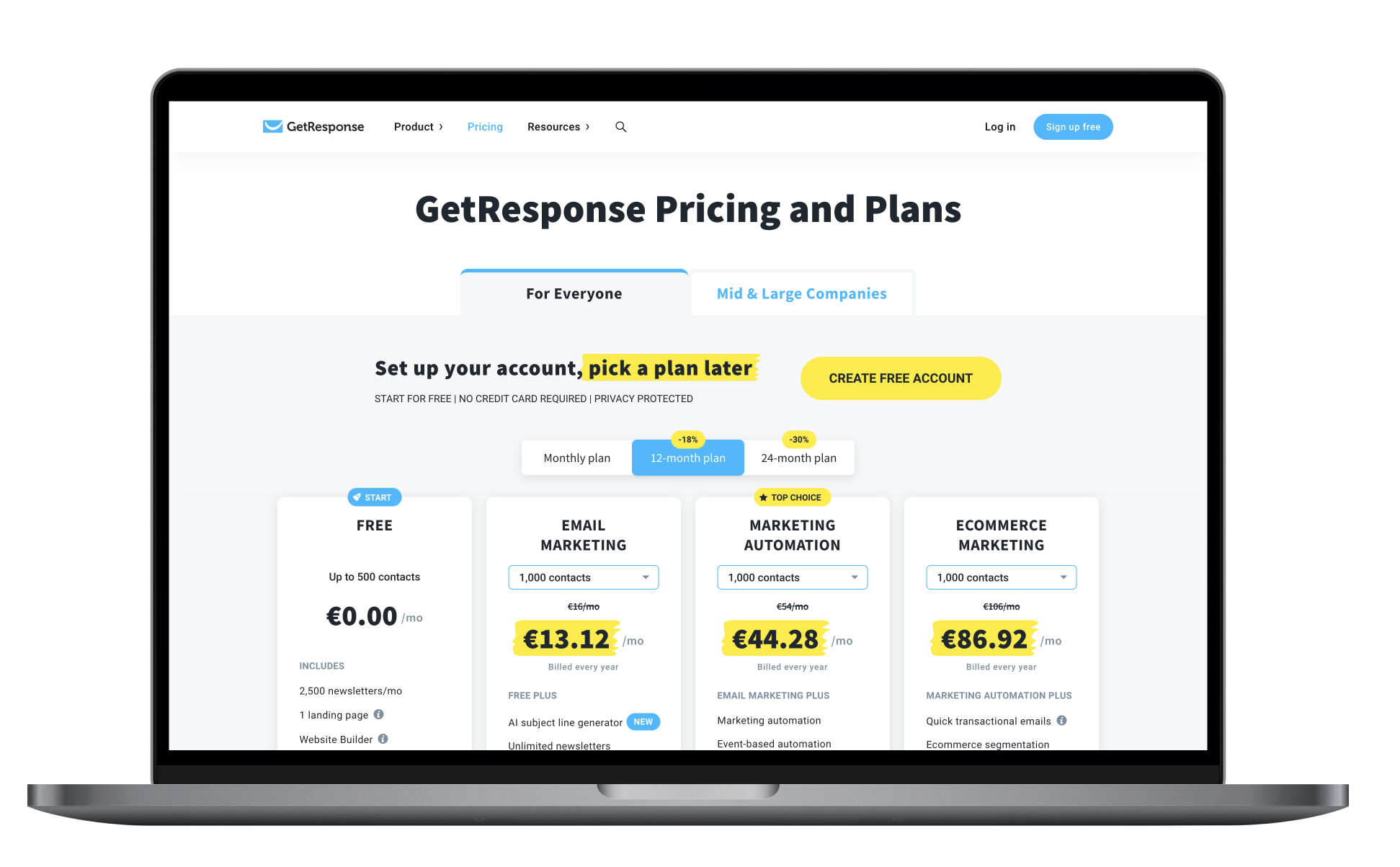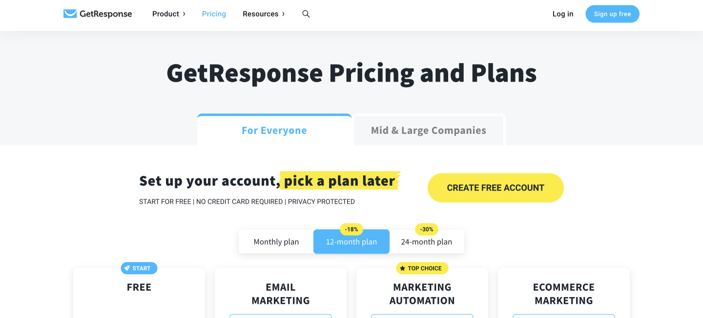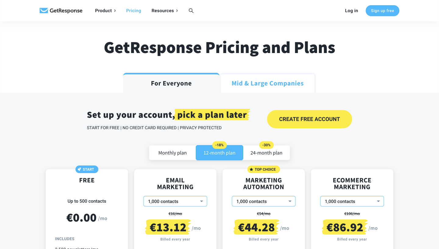 Přepínací záložky „For everyone“ a „Mid & Large Companies“.