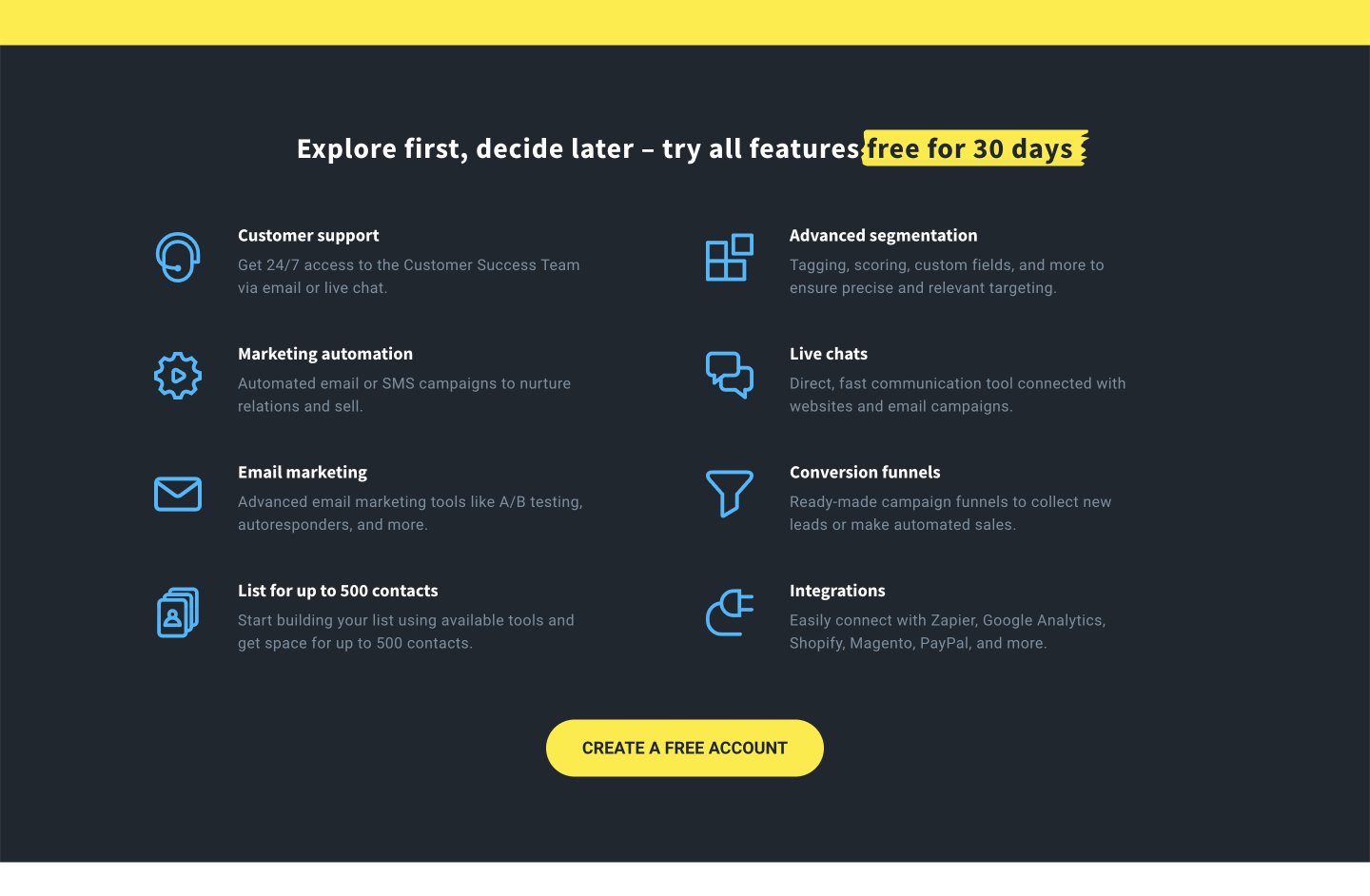 Další sekce navazuje na bezplatný účet. Nabízí navíc možnost vyzkoušet si všechny funkce nástroje zdarma po dobu 30 dní. To ještě víc posiluje Majetnický efekt.