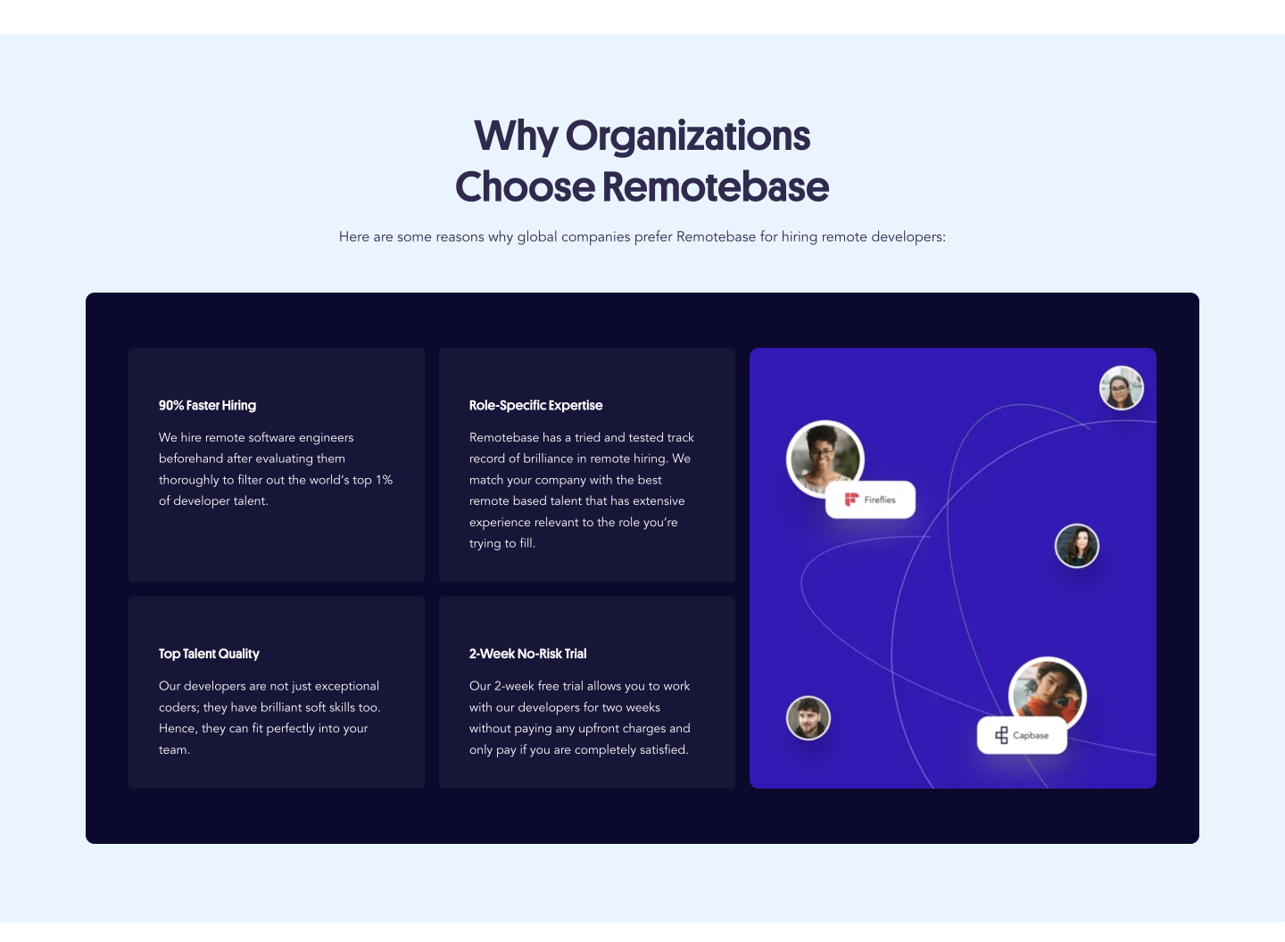 Na webu RemoteBase jste schopni najít vzdáleně po celém světě relevantní vývojáře.