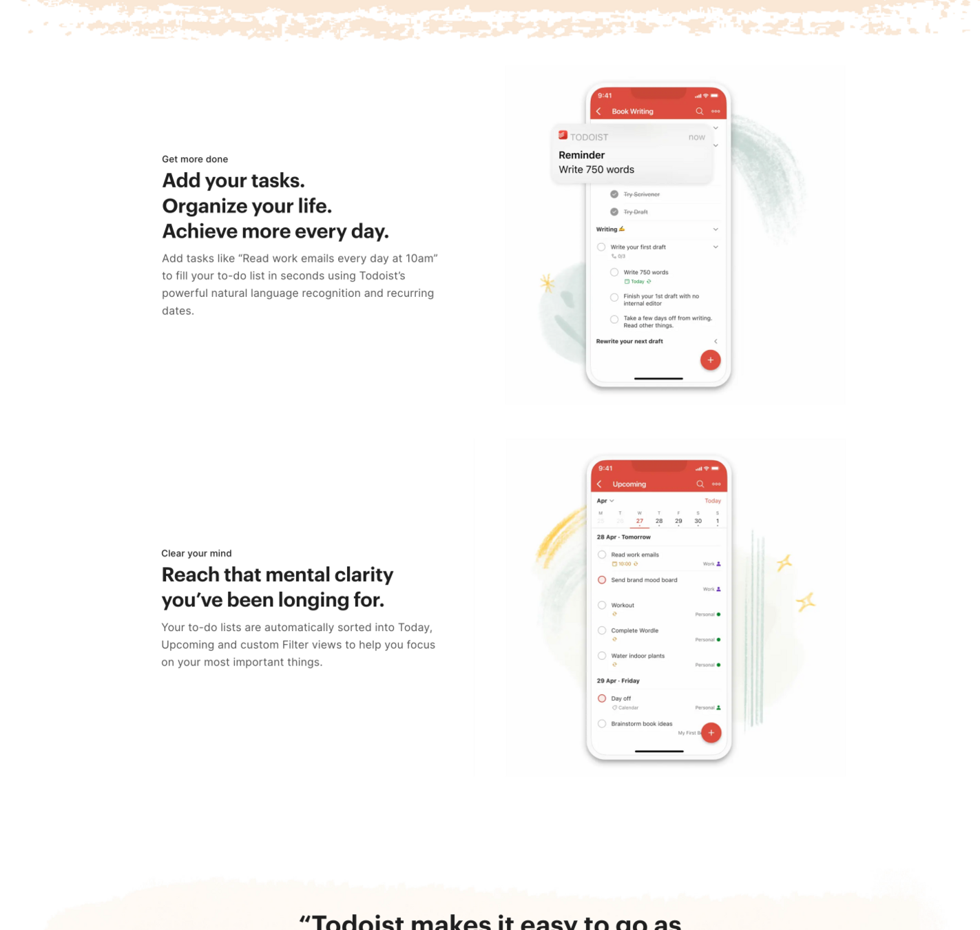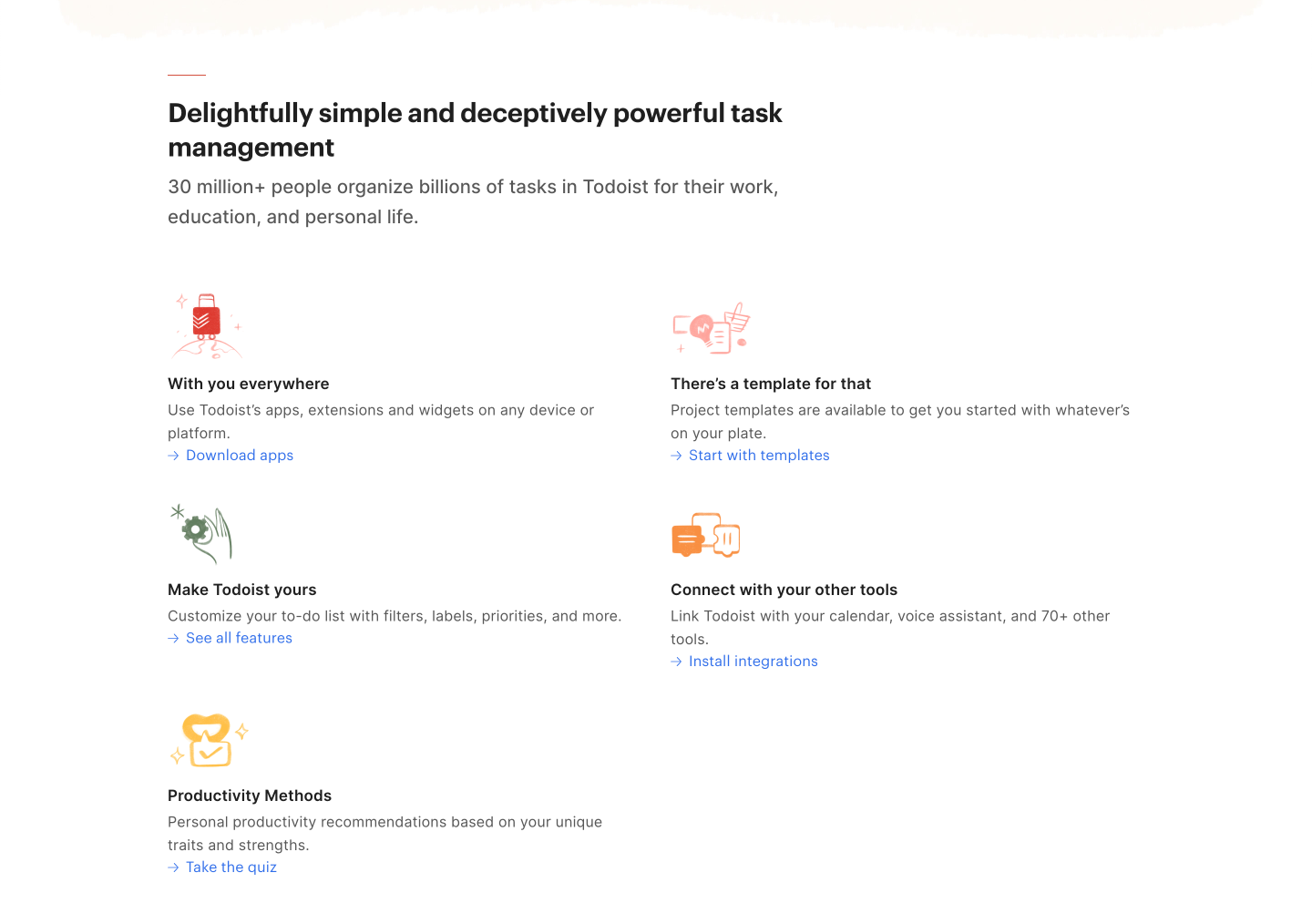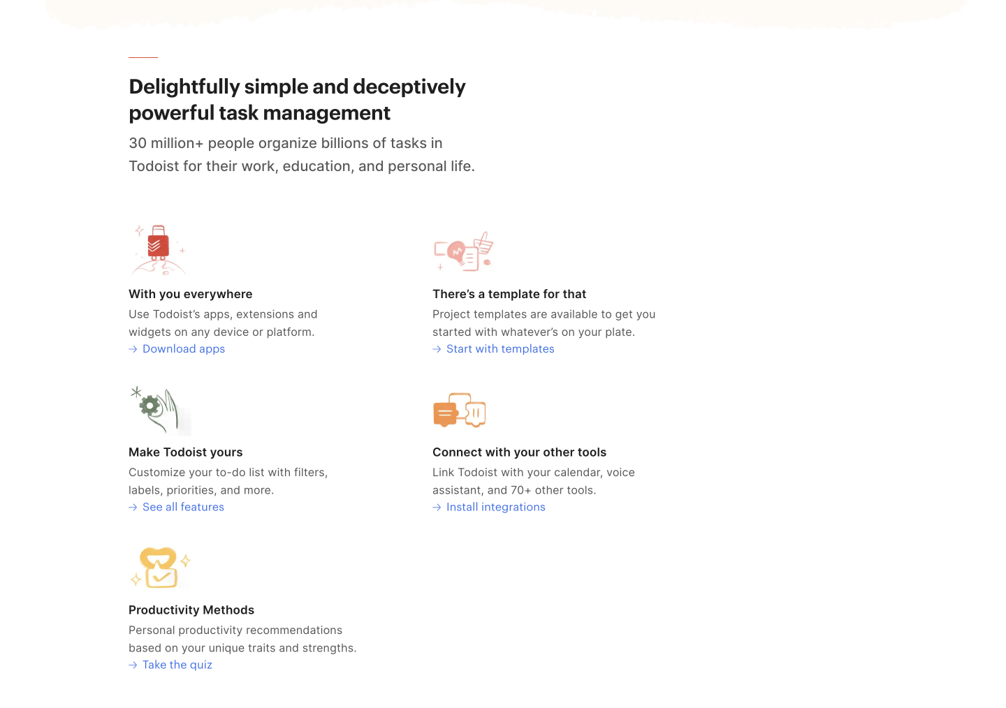 „Více než 30 milionů lidí organizuje v Todoistu miliardy úkolů pro svou práci, vzdělávání a osobní život.“