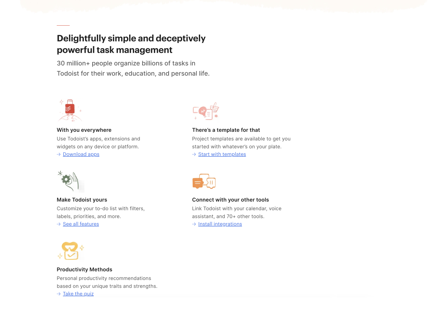 „Join millions of people who organize work and life with Todoist.“