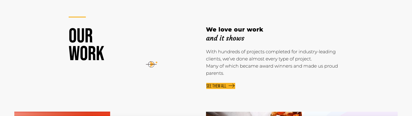 Celou sekci „dotváří“ malý abstraktní prvek uprostřed. On totiž není až tak malý. Má kolem sebe hodně prázdného místa.