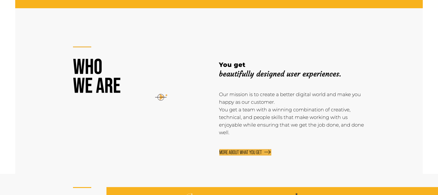 Jeho další funkcí je vyrovnání vizuální rovnováhy. Hlavní žlutá barva končí předchozí sekci a začíná následující. Je v lince nad nadpisem a je