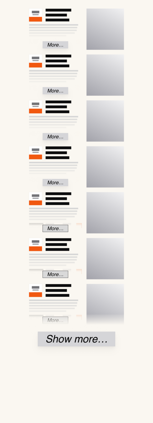 Stejně tak by mohl být vykreslen menší počet modulů a další zobrazit, až bude uživatel chtít viz Millerův zákon.
