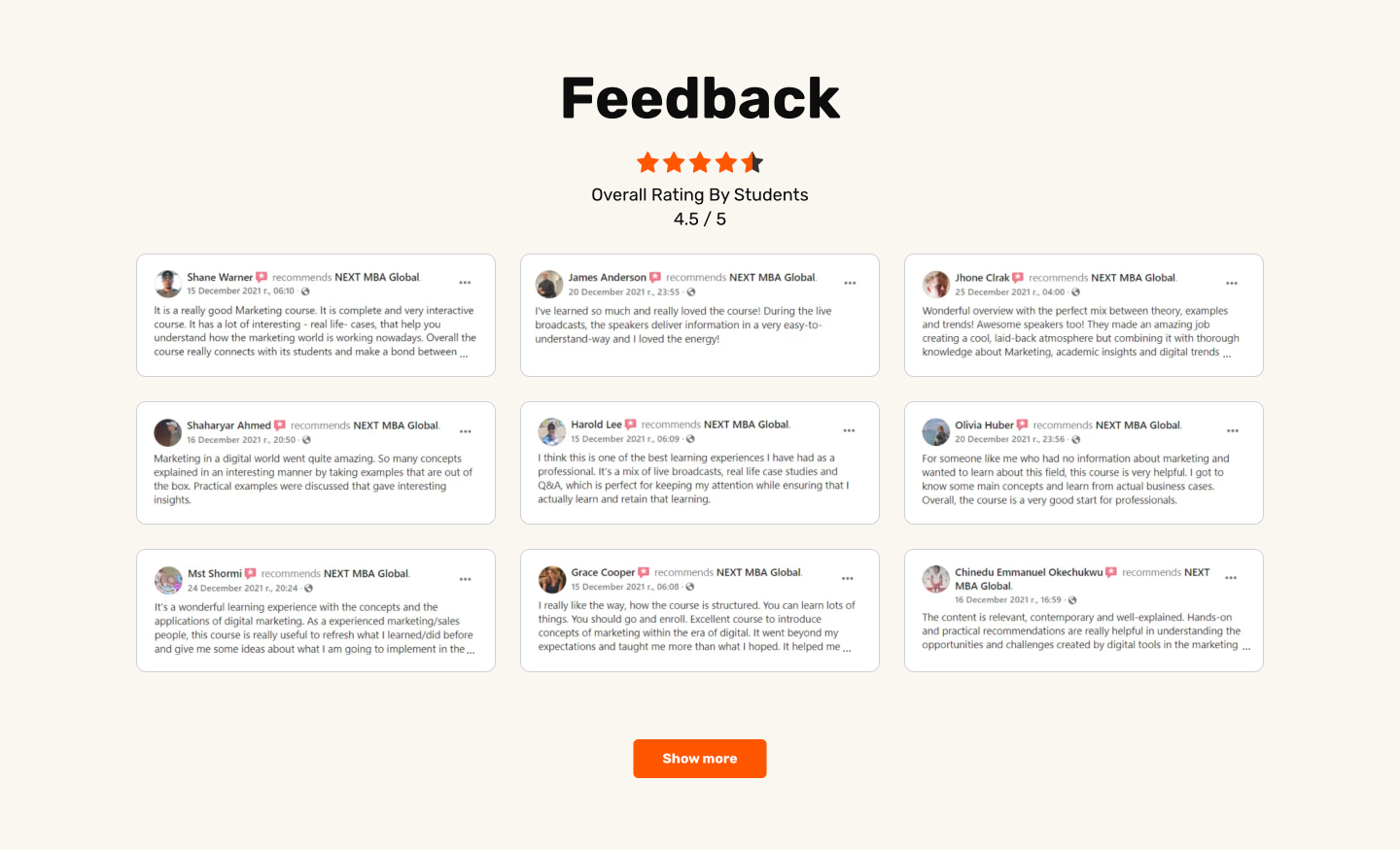 - výslovné sdělení, že zákazníci hodnotí společnost NEXT MBA Global.
