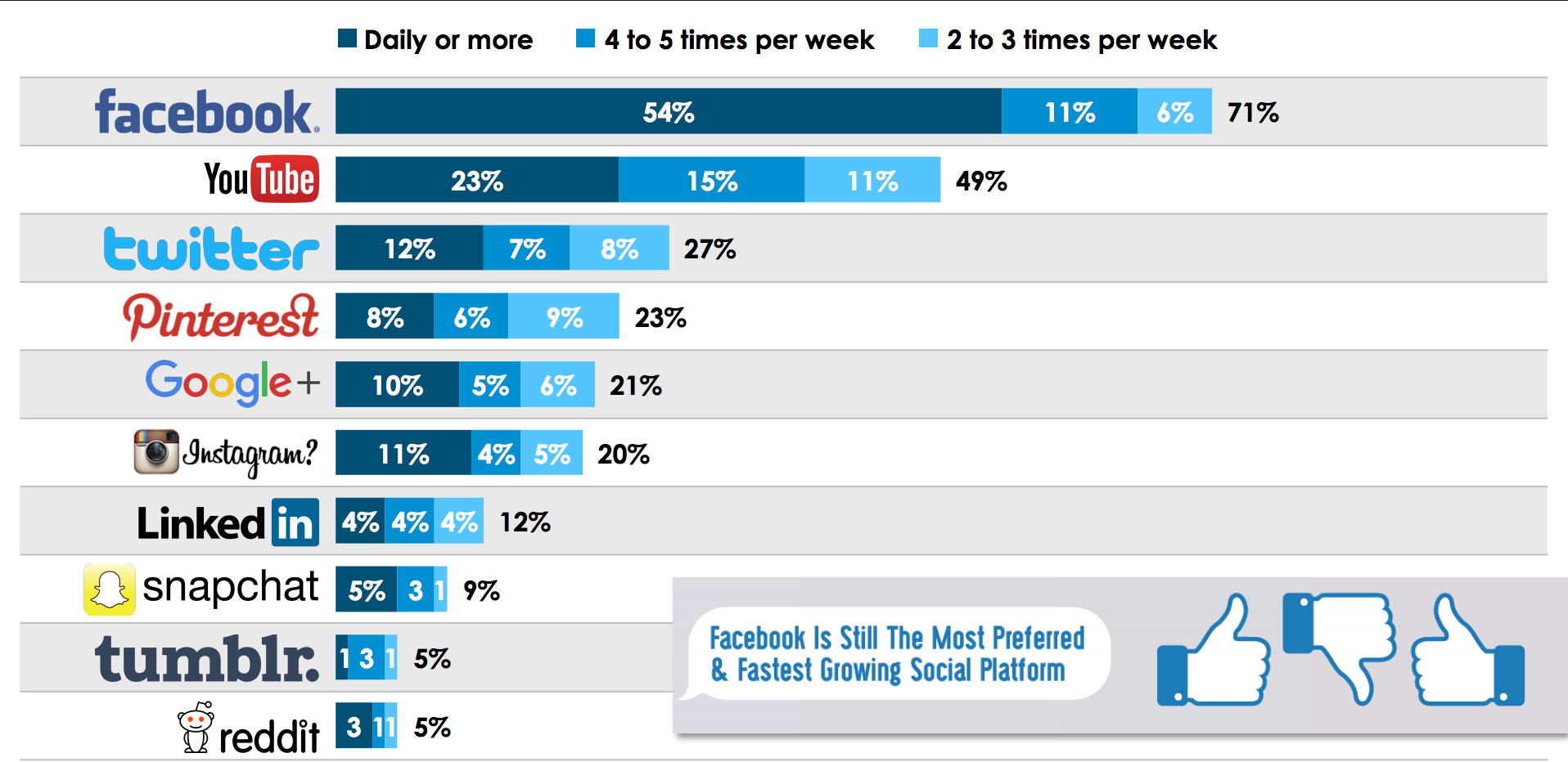 Facebook is still the preferred social media platform for Canadians, with over half using it daily.