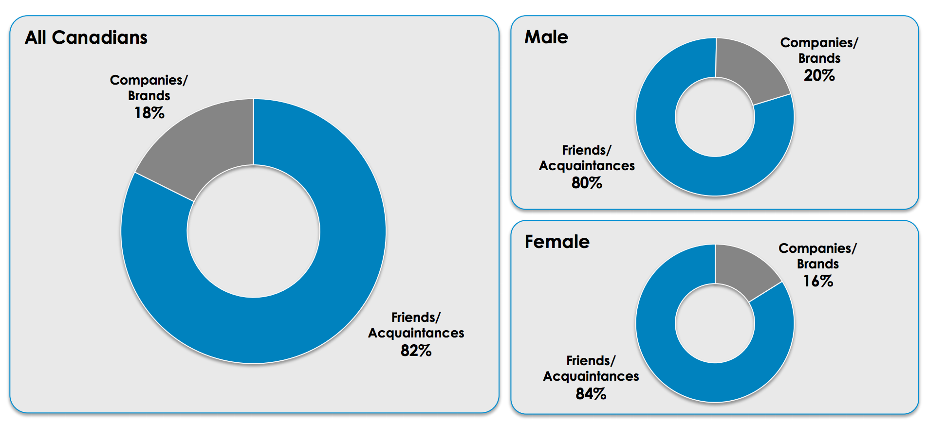 Overall, Canadians spend 18% of time online interacting with brands (vs. friends, family, etc.)