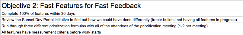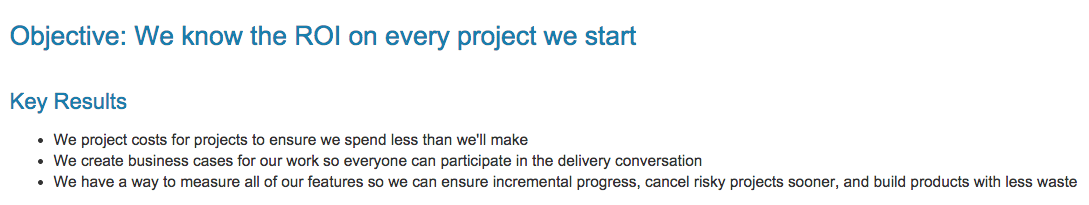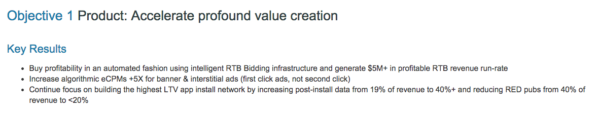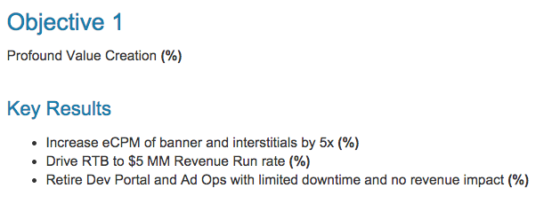 Objectively quantifiable/measurable (has a number, i.e. 50% retention, not "better)