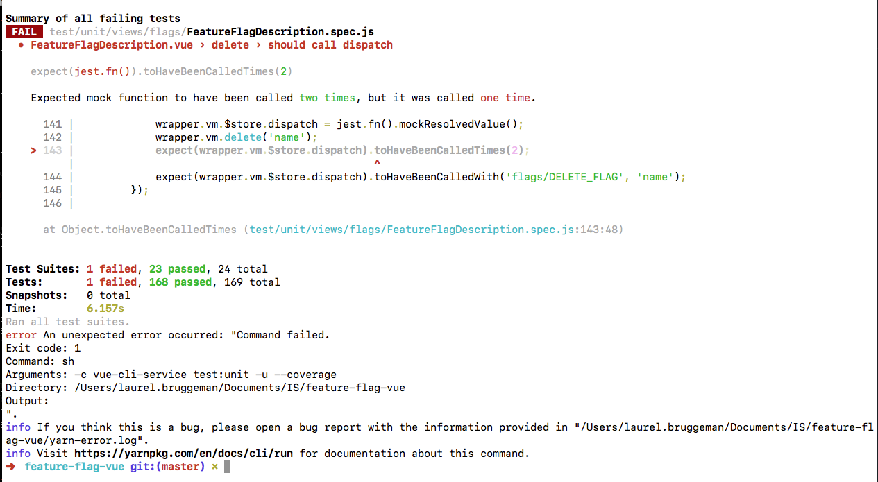 expect(vm.$store.dispatch).toHaveBeenCalledTimes(1);Running Jest