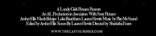 Looking at the text we used, the main piece is the title of the movie ‘The Last Summer’ it is placed in the centre of the poster, so that it gains most of the audience’s attention straight away. The font that we used, we wanted to keep as close to the fonts used for the trailer and the magazine cover to it is obvious they are all advertising the same product. The colours used for the text are red and white to stand out from the black background and show the convention of horror movie colours.