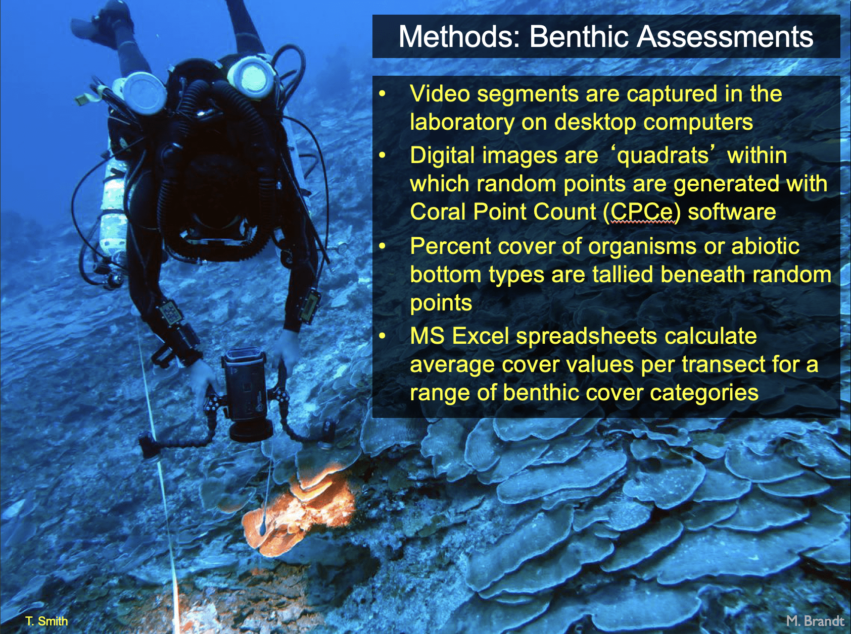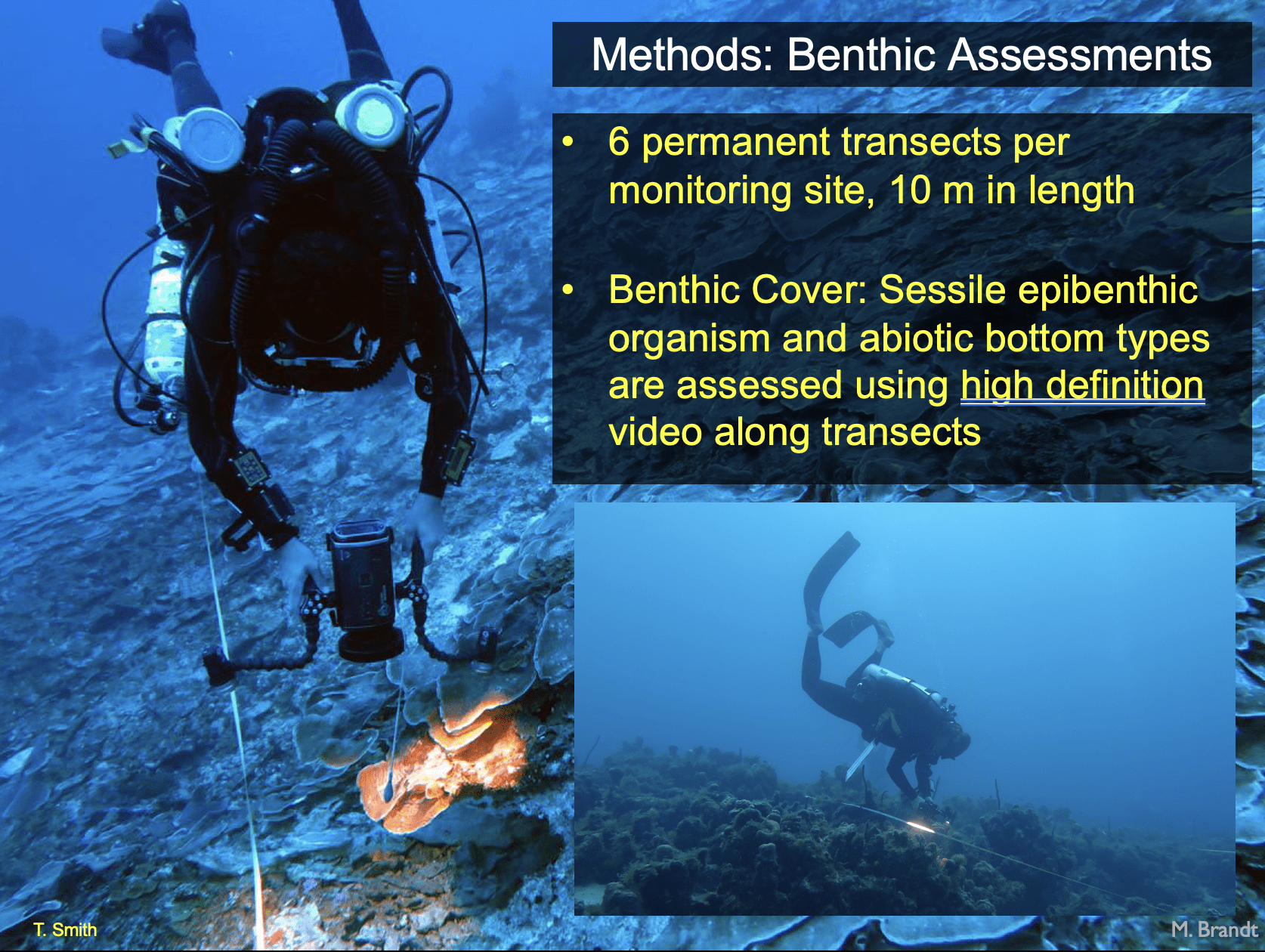 - One diver traversed each transect for videotaping