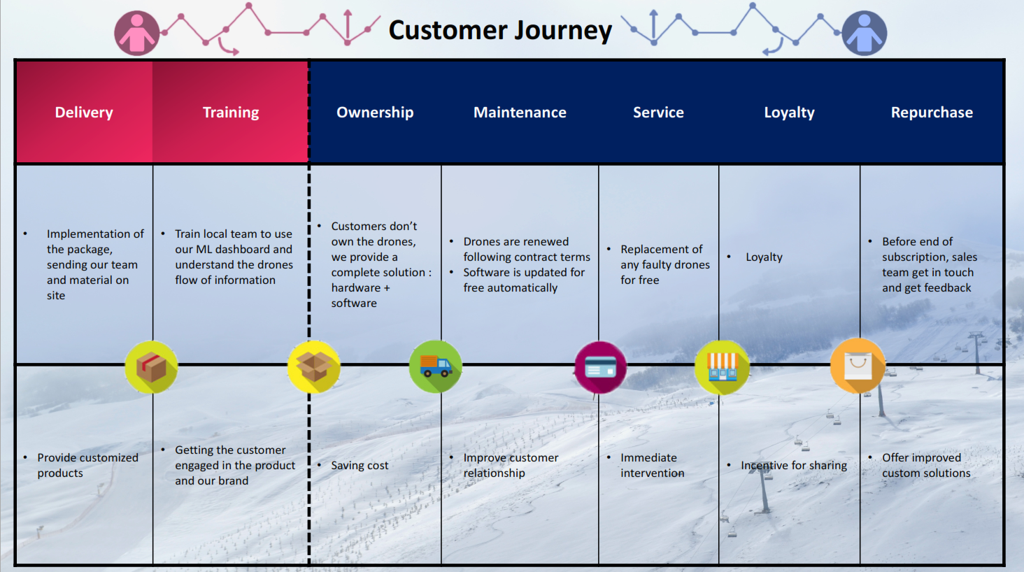 We employ drones coupled with advanced machine vision algorithms to improve response times for accidents, find lost people, predict avalanches and denote area safety in mountains