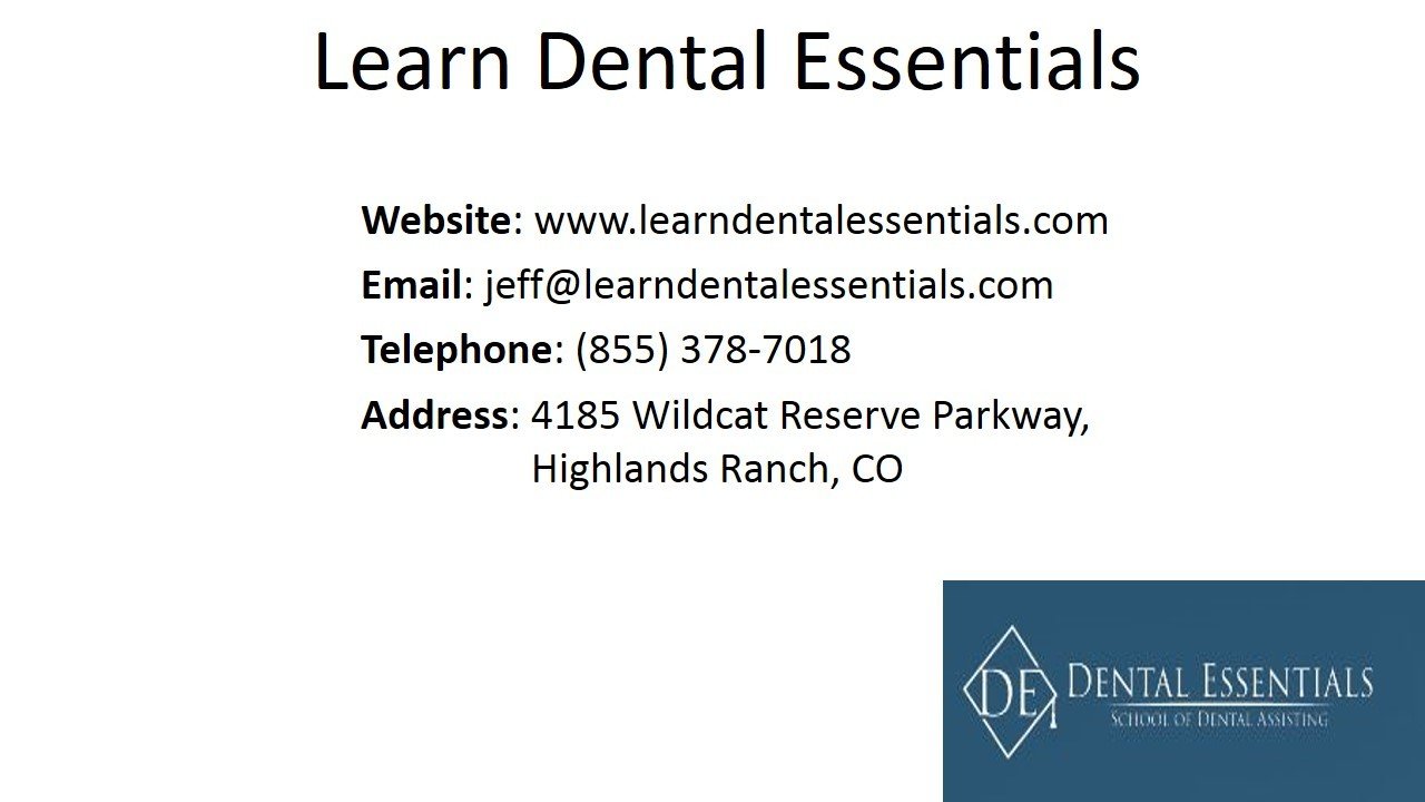 Are you wanting to start a nice career in dentistry but unsure where to start from? Then Dental Essentials is the place to visit right away! Our School for Dental Assistant in Denver is all you need to learn the exact skills and expertise needed. Visit Website http://www.learndentalessentials.com For More Information.