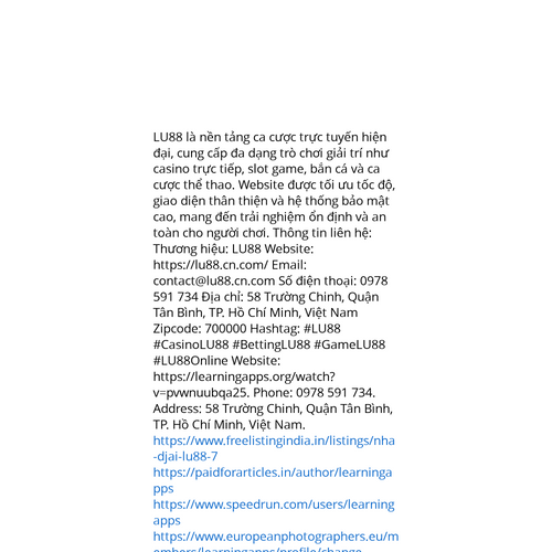 Website: https://learningapps.org/watch?v=pvwnuubqa25https://learningapps.org/watch?v=pvwnuubqa25 LU88 là nền tảng ca cược trực tuyến hiện đại, cung cấp đa dạng trò chơi giải trí như casino trực tiếp, slot game, bắn cá và ca cược thể thao. Website được tối ưu tốc độ, giao diện thân thiện và h