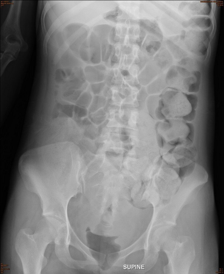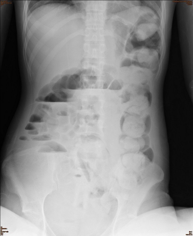 Answer 2 : Partial obstruction, because can see air in the rectum