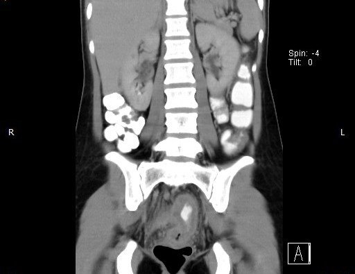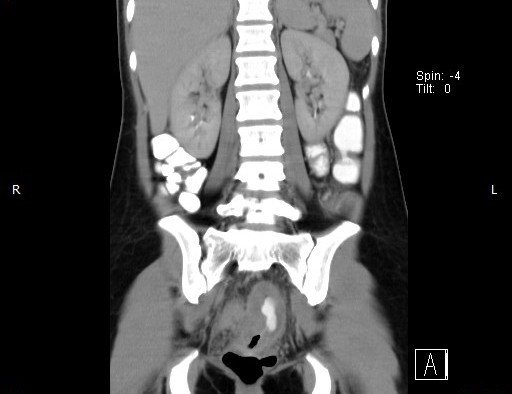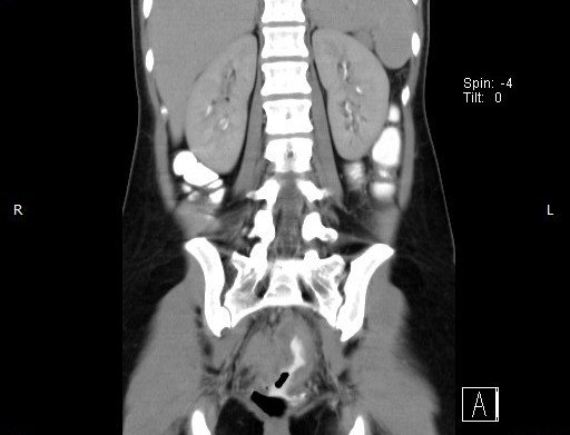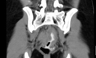 CT finding : Circumferential rectal wall thickening-> Tissue diagnosis -> Rectal cancer