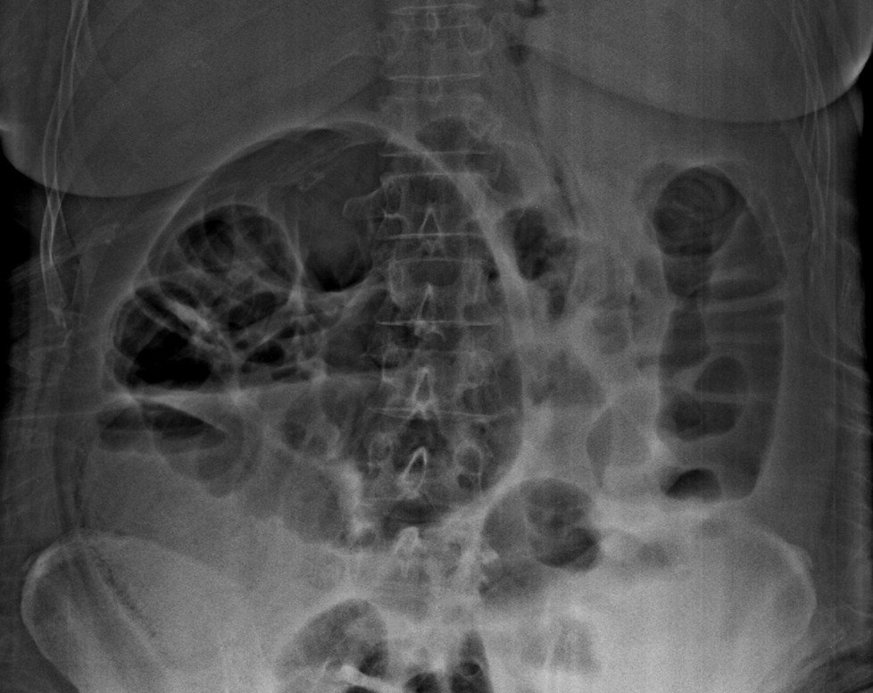 Answer : C. Air in the bowel wall or pneumatosis intestinalis