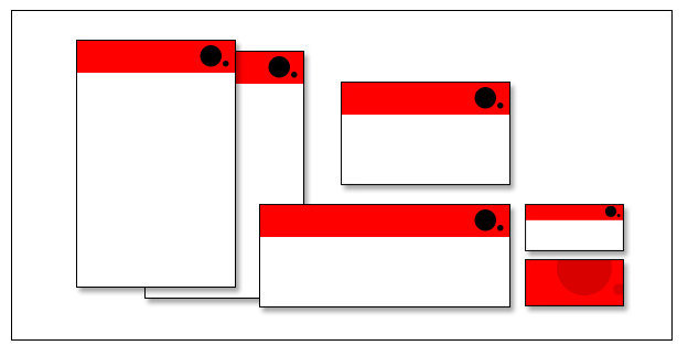The red circle and squares are focal points. The circle is the dominant element or dominant focal point.